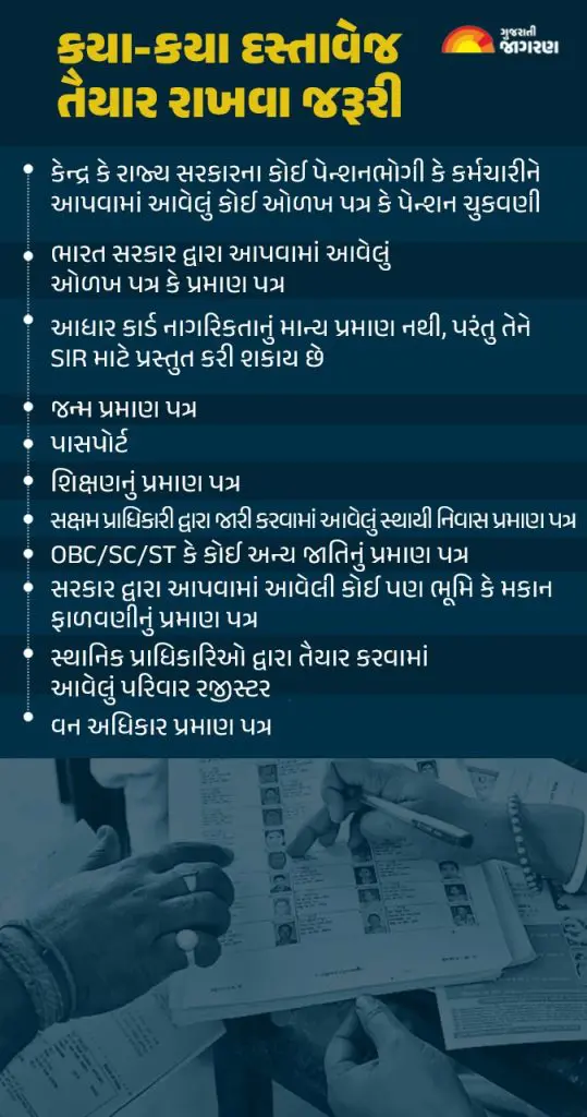 આ માટે મૃત્યુ પ્રમાણપત્ર જેવા વિશ્વસનીય પુરાવા સંબંધિત ચૂંટણી નોંધણી અધિકારી (ERO)/બૂથ લેવલ ઓફિસર (BLO)ને સબમિટ કરવા પડશે. તાજેતરમાં, મતદાર યાદી અને દસ્તાવેજો સબમિટ કરવાની પ્રક્રિયા અંગે થોડી મૂંઝવણ ઊભી થઈ છે. તો SIR વિશેના મહત્વપૂર્ણ મુદ્દાઓ અહીં છે-