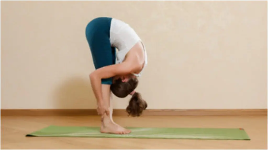 શ્વાસ બહાર કાઢતી વખતે, ધીમે ધીમે તમારા કમરને નીચેની તરફ વાળો. હસ્ત ઉત્તાનાસન જાળવી રાખો અને તમારા શરીરના ઉપલા ભાગને નીચે કરો. તમારા નાકને તમારા ઘૂંટણની વચ્ચે રાખો. તમારા હથેળીઓને તમારા પગની બંને બાજુ રાખો. જો તમે શરૂઆત કરી રહ્યા હોવ, તો આ કરવા માટે તમારે તમારા ઘૂંટણને સહેજ વાળવાની જરૂર પડી શકે છે. જો કે ધીમે-ધીમે તમારા ઘૂંટણ સીધા કરીને તમારી જાંઘોને તમારી છાતીના સંપર્કમાં લાવવામાં સફળ થઈ જશો.