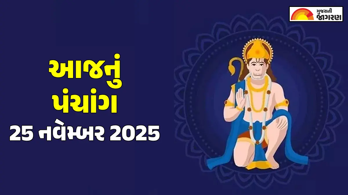 Aaj Nu Panchang (આજનું પંચાંગ) 25 November 2025 | આજનું પંચાંગ, તિથિ અને આજના દિવસના ચોઘડિયા | Today Choghadiya Gujarati | Aaj Nu Panchang Gujarati: હિન્દુ ધર્મમાં કોઈ પણ શુભ કાર્ય કરતા પહેલાં પંચાંગ જોવાની પરંપરા છે, જે સમય અને કાળની સચોટ ગણતરી રજૂ કરે છે. દૈનિક પંચાંગ પાંચ મુખ્ય ભાગો તિથિ, નક્ષત્ર, વાર, યોગ અને કરણથી બનેલું છે. 25 નવેમ્બર 2025, મંગળવારના રોજ માગશર સુદ પાંચમ છે. અહીં દ્રિક પંચાંગ મુજબ અમે તમને શુભ મુહૂર્ત, રાહુકાલ, સૂર્યોદય અને સૂર્યાસ્તનો સમય, તિથિ, કરણ, નક્ષત્ર, સૂર્ય અને ચંદ્ર ગ્રહની સ્થિતિ, હિન્દુ મહિનો અને પક્ષ વગેરે વિશે માહિતી આપી રહ્યા છીએ.